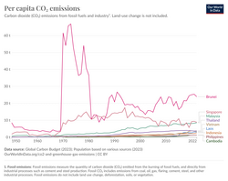 The ASEAN has initiated its transition to cleaner energy sources. This transition is characterised as Demanding, Doable, and Dependent.[264] With approximately 700 million inhabitants, the region is witnessing a substantial surge in energy demand, projected to triple by 2050. However, transitioning energy sources requires significant resources. Southeast Asia would need to invest US$27 billion annually in renewable energy to achieve the target of 23% renewables in the primary energy supply by 2025. Nevertheless, this goal is attainable with the implementation of appropriate policies.[264]