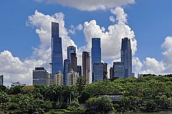 Just over half (around 50.1%) of Southeast Asia's inhabitants lived in urban areas in 2020, projected to rise to 55.6% in 2030, a total of almost 405 million people.[281] Urbanisation is concentrated in coastal plains and river deltas, giving the region a dense belt of large cities around the Java Sea, South China Sea and Gulf of Thailand.[282] Southeast Asia contains dozens of metropolitan areas with populations of over 1 million; ASEAN data indicate that about 13% of the region's citizens live in 28 cities with more than one million inhabitants, with a further 14% in 367 settlements of between 100,000 and 1 million people.[283]