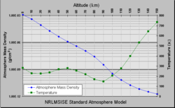 The thermosphere is the second-highest layer of Earth's atmosphere. It extends from the mesopause (which separates it from the mesosphere) at an altitude of about 80 km (50 mi; 260,000 ft) up to the thermopause at an altitude range of 500–1000 km (310–620 mi; 1,600,000–3,300,000 ft). The height of the thermopause varies considerably due to changes in solar activity.[20] Because the thermopause lies at the lower boundary of the exosphere, it is also referred to as the exobase. The lower part of the thermosphere, from 80 to 550 kilometres (50 to 342 mi) above Earth's surface, contains the ionosphere.