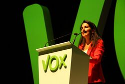 Rocío Monasterio joined Vox in 2014. Currently she is the president of VOX Madrid.[19]