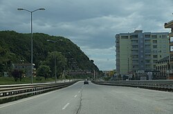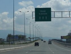 The Pan-European Corridor VIII is one of the Pan-European corridors. It runs between Durrës, at the Adriatic coast, and Varna, at the Bulgarian Black Sea coast. The National Road 2 (SH2) begins at the Port of Durrës at the Dajlani Overpass, bypasses the road to Tirana International Airport, and ends at the Kamza Overpass in the outskirts of Tirana where it meets National Road 1 (SH1) State Road heading to northern Albania. The Albania–Kosovo Highway is a four-lane highway constructed from 2006 to 2013 between Albania and Kosovo. As part of the South-East European Route 7,[69] the highway will connect the Adriatic Sea ports of Durrës via Pristina, with the E75/Corridor X near Niš, Serbia. As most tourists come through Kosovo, the laying of the highway make it easier to travel to Durrës.