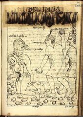 In some Native American cultures, severe penalties could be imposed on an adulterous wife by her husband. In many instances she was made to endure a bodily mutilation which would, in the mind of the aggrieved husband, prevent her from ever being a temptation to other men again.[141][142] Among the Aztecs, wives caught in adultery were occasionally impaled, although the more usual punishment was to be stoned to death.[143]