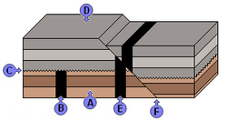 From Handwiki A geological contact is a boundary which separates one rock body from another.[1] A contact can be formed during deposition, by the intrusion of magma,[2] or through faulting or other deformation of rock beds that brings distinct rock bodies into contact.[3] The geologic subdiscipline of stratigraphy is primarily concerned with depositional contacts,[4] while faults and shear zones are of particular interest in structural geology. Faults and shear zones can be regarded as a form of secondary structure in the rock beds.[5]