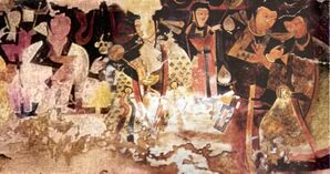 The Tang Empire competed with the Tibetan Empire for control of areas in Inner and Central Asia, which was at times settled with marriage alliances such as the marrying of Princess Wencheng (d. 680) to Songtsän Gampo (d. 649).[49][50] A Tibetan tradition mentions that after Songtsän Gampo's death in 649 AD, Chinese troops captured Lhasa.[51] The Tibetan scholar Tsepon W. D. Shakabpa believes that the tradition is in error and that "those histories reporting the arrival of Chinese troops are not correct" and claims that the event is mentioned neither in the Chinese annals nor in the manuscripts of Dunhuang.[52]