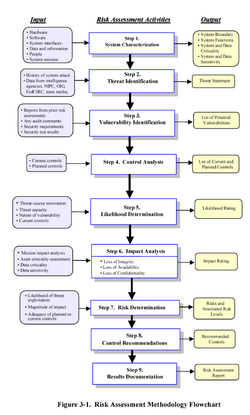 Impact refers to the magnitude of harm that could be caused by a threat's exercise of vulnerability. The level of impact is governed by the potential mission impacts and produces a relative value for the IT assets and resources affected (e.g., the criticality sensitivity of the IT system components and data). The risk assessment methodology encompasses nine primary steps:[7]