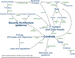Risk management in the IT world is quite a complex, multi faced activity, with a lot of relations with other complex activities. The picture to the right shows the relationships between different related terms.