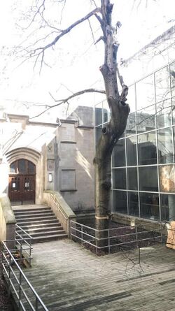 The Chemistry Department has had a history at Indiana University since the early days of the institution. Chemistry courses were first added to the curriculum in 1829 by Andrew Wylie, IU president at the time (1829–1851).[46] The first degrees in chemistry were awarded in 1890. The graduate school at Indiana University was not formally established until 1904 but not soon after, a plan for graduate work in chemistry was underway. However, the first PhD in chemistry was not granted until 1921.[47] In 1931, the construction of a new facility explicitly for chemistry began which led to major growth within the department. Some of the department's most acclaimed and prolific faculty came to the university during this time. [according to whom?] A major staple to the department is the famous Sweetheart tree [48] that has stood outside the Chemistry Building since it was built in 1931. Even when a major addition to the building was made in the 1980s, architects decided to preserve the beloved tree and build around it. In the spring of 2018 the university announced the famous sweetheart tree was dying, and removal was scheduled to begin on April 11.