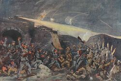 The largest siege of the war, and arguably the roughest, most gruesome battle in history, was the Battle of Verdun. Whether the battle can be considered true siege warfare is debatable. Under the theories of Erich von Falkenhayn, it is more distinguishable as purely attrition with a coincidental presence of fortifications on the battlefield. When considering the plans of Crown Prince Wilhelm, purely concerned with taking the citadel and not with French casualty figures, it can be considered a true siege. The main fortifications were Fort Douaumont, Fort Vaux, and the fortified city of Verdun itself. The Germans, through the use of huge artillery bombardments, flamethrowers, and infiltration tactics, were able to capture both Vaux and Douaumont, but were never able to take the city, and eventually lost most of their gains. It was a battle that, despite the French ability to fend off the Germans, neither side won. The German losses were not worth the potential capture of the city, and the French casualties were not worth holding the symbol of her defence.