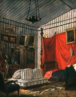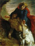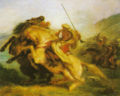 Eugène Ferdinand Victor Delacroix (1798-1863) was a French Romantic painter (For some the most important of the French Romantic painters). Delacroix was celebrated for the use of expressive color that influenced later painters, notably the Impressionists. As a lithographer, he illustrated works of Shakespeare, Walter Scott and Goethe.