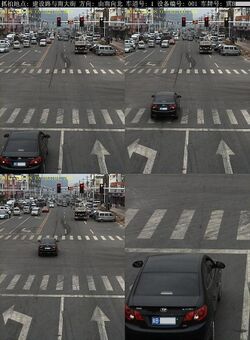 A set of pictures taken by a red light camera in Luannan County, China, the black car in the pictures ran the red light