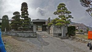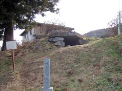 A certain legend claims that a son of Mononobe no Moriya, named either Takemaro (武麿) or Otogimi (弟君), survived the defeat of the Mononobe in the Battle of Mount Shigi in 587 and fled to Suwa, where he married into the Jinchō Moriya clan; Takemaro is thus reckoned as a clan ancestor in the Jinchō Moriya-shi Keifu.[lower-alpha 14][72] A small mound in the Moriya clan's historical estate in Chino dated to the 7th century[73] is claimed in family lore to be Takemaro's tomb.[74]