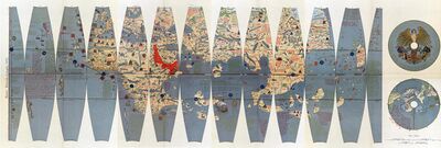 As European geographers gathered more reliable information about the Indian Ocean, the purported location of Chryse and Argyre shifted farther and farther east to the fringes of the known world. By the time Martin Behaim created his Erdapfel globe in 1492, the islands were thought to be near Japan, possibly because Marco Polo had claimed Japan itself (which he called Cipangu) to be rich in gold and silver; Behaim is known to have used both Pliny and Marco Polo as sources.[3] Another proposed location was the Kingdom of Salakanagara on Java, based on the fact that Salakanagara means "island of silver" in Sanskrit.[4]