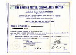 The agreed exchange of shares in Morris or Austin for shares in the new holding company, BMC, became effective in mid-April 1952.[2]