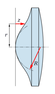 The focal length of a lens in air can be calculated from the lensmaker's equation:[20]