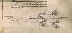 The oldest certain reference to the use of lenses is from Aristophanes' play The Clouds (424 BCE) mentioning a burning-glass.[6] Pliny the Elder (1st century) confirms that burning-glasses were known in the Roman period.[7] Pliny also has the earliest known reference to the use of a corrective lens when he mentions that Nero was said to watch the gladiatorial games using an emerald (presumably concave to correct for nearsightedness, though the reference is vague).[8] Both Pliny and Seneca the Younger (3 BC–65 AD) described the magnifying effect of a glass globe filled with water.