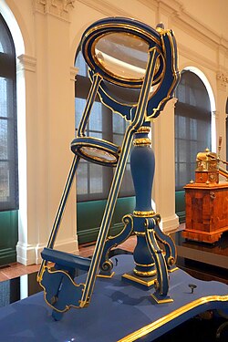 Spectacles were invented as an improvement of the "reading stones" of the high medieval period in Northern Italy in the second half of the 13th century.[10] This was the start of the optical industry of grinding and polishing lenses for spectacles, first in Venice and Florence in the late 13th century,[11] and later in the spectacle-making centres in both the Netherlands and Germany .[12] Spectacle makers created improved types of lenses for the correction of vision based more on empirical knowledge gained from observing the effects of the lenses (probably without the knowledge of the rudimentary optical theory of the day).[13][14] The practical development and experimentation with lenses led to the invention of the compound optical microscope around 1595, and the refracting telescope in 1608, both of which appeared in the spectacle-making centres in the Netherlands.[15][16]