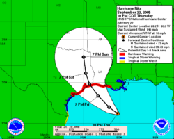 A major part of modern weather forecasting is the severe weather alerts and advisories that the national weather services issue in the case that severe or hazardous weather is expected. This is done to protect life and property.[87] Some of the most commonly known of severe weather advisories are the severe thunderstorm and tornado warning, as well as the severe thunderstorm and tornado watch. Other forms of these advisories include winter weather, high wind, flood, tropical cyclone, and fog.[88] Severe weather advisories and alerts are broadcast through the media, including radio, using emergency systems as the Emergency Alert System, which break into regular programming.[89]