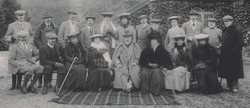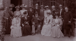 Key events in the social calendar of the set included horse race meetings, especially Royal Ascot, the Epsom Derby and the St Leger Stakes. Members also enjoyed shooting, hunting, playing cards and attending extravagant dinners.[1] Edward and the set developed the concept of the country house weekend, ostensibly for the purposes of hunting and shooting. When the men returned to the host's house at tea time in the afternoon the women would dress in tea gowns, without corsets or petticoats and assignations would often take place.[4] Country home owners spent vast sums to improve their buildings and furnishings ahead of these weekends. Witley Park in Surrey was a favourite location.[5] Towards the end of the weekends the attendees were often formally photographed with Edward seated in the centre, the current hostess to his right and his current mistress to his left.[1]