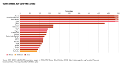 "Water stress" has been used as a criterion to measure water scarcity, for example in the context of Sustainable Development Goal 6.[10] In this context, a report by FAO in 2018 has defined water stress as: "the ratio between total freshwater withdrawn (TFWW) by all major sectors and total renewable freshwater resources (TRWR), after taking into account environmental flow requirements (EFR)". This means that the value for TFWW is divided by the difference between TRWR minus EFR.[29]:xii Environmental flows are water flows required to sustain freshwater and estuarine ecosystems. Previously, a definition used for Millennium Development Goal 7, target 7.A was simply the proportion of total water resources used, without taking into consideration EFR.[29]:28 With this definition, water stress is defined by the following categories: <10% is low stress; 10-20% is low-to-medium; 20-40% medium-to-high; 40-80% high; >80% very high.[30]