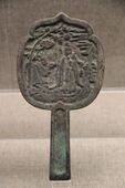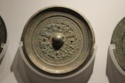 Some of the earliest examples of Chinese bronze mirrors belonged to the late Neolithic Qijia culture from around 2000 BCE (some use of bronze is found before the Bronze Age, when it became general for some types of objects). However, until Warring States times, bronze mirrors were not common with approximately only twenty having been discovered. During the Warring States period, mirrors became particularly popular.[14] During the Han dynasty (202 BCE – 220 CE) mirrors started to be mass-produced, in standardised designs including the TLV mirror. Both Han and Tang mirrors are considered to be the most technically advanced. Both the quantity and quality of finds in graves declined after the Tang dynasty,[15] but bronze mirrors continued to remain popular up through the Song dynasty, but then gradually lost their popularity and ceased to be produced after the arrival of Western mirrors during the Ming and Qing dynasties.[16]