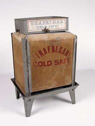 The Coolgardie safe is a low-tech food storage unit, using evaporative cooling to prolong the life of whatever edibles are kept in it. It applies the basic principle of heat transfer which occurs during evaporation of water (see latent heat and heat of evaporation). It was named after the place where it was invented – the small mining town of Coolgardie, Western Australia, near Kalgoorlie-Boulder.