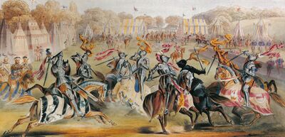 The preparations, and the many works of art commissioned for or inspired by the Eglinton Tournament, had an effect on public feeling and the course of 19th-century Gothic revivalism. Its ambition carried over to events such as the lavish Tournament of Brussels in 1905, and presaged the historical reenactments of the present. Features of the tournament were actually inspired by Walter Scott's novel Ivanhoe: it was attempting "to be a living re-enactment of the literary romances".[2] In Eglinton's own words "I am aware of the manifold deficiencies in its exhibition — more perhaps than those who were not so deeply interested in it; I am aware that it was a very humble imitation of the scenes which my imagination had portrayed, but I have, at least, done something towards the revival of chivalry".[3]