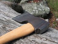 Most modern axes have steel heads and wooden handles, typically hickory in the US and ash in Europe and Asia, although plastic or fibreglass handles are also common. Modern axes are specialised by use, size and form. Hafted axes with short handles designed for use with one hand are often called hand axes but the term hand axe refers to axes without handles as well. Hatchets tend to be small hafted axes often with a hammer on the back side (the poll). As easy-to-make weapons, axes have frequently been used in combat, and is one of humanity's oldest melee weapons.[1]