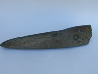 There was a copious amount of stone tools, including a trapezoidal axe of Hessian slate, 17 triangular arrowheads of flint and slate, 16 flint and 7 slate blades, 2 flint scrapers, 1 chalcedony core, plus another 40 pieces of worked stone (mainly flint). At least some of the flint appears to be imported.[14]
