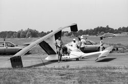 The human piloted Solair I was developed from 1980 by Günther Rochelt - developer of the Musculair human-powered aircraft series - based on a Hans Farner canard design.[1][2] It employed 2499 wing-mounted solar cells giving an output of between 1.8 kilowatts (kW), equivalent to approximately 2.4 horsepower (hp), and 2.2 kW (3.0 hp). The aircraft first flew at Unterwössen, Germany on 21 August 1983.[1] It flew for 5 hours and 41 minutes, "mostly on solar energy and also thermals".[1] The aircraft is now displayed at the German Museum in Munich.[2] The newly developed piloted Solair II made its first flight in May 1998 and further test flights that summer but the propulsion system overheated too fast.[2] Development stopped when Günther Rochelt suddenly died in September 1998.