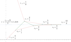 | ra | 0 | 1 | 1/2 | 3/5 | 4/7 | 11/19 | 15/26 | 41/71 | 56/97 | 153/265 | 209/362 | |