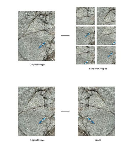Discontinuities such as a fault plane, bedding plane etc have important implications in engineering.[34] Rock fractures can be recognized automatically by machine learning through photogrammetric analysis even with the presence of interfering objects, for example, foliation, rod-shaped vegetation, etc.[35] In machine training for classifying images, data augmentation is a common practice to avoid overfitting and increase the training dataset.[35] For example, in a research of recognizing rock fractures, 68 images for training and 23 images for the testing dataset were prepared by random splitting.[35] Data augmentation was then carried out and the training dataset was increased to 8704 images by flip and random crop.[35] The approach was able to recognize the rock fractures accurately in most cases.[35] The Negative Prediction Value (NPV) and the Specificity were over 0.99.[35] This demonstrated the robustness of discontinuity analyses with machine learning.
