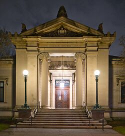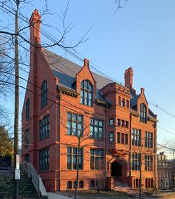 The Annmary Brown Memorial was constructed from 1903 to 1907 by the politician, Civil War veteran, and book collector General Rush Hawkins, as a mausoleum for his wife, Annmary Brown, a member of the Brown family. In addition to its crypt—the final repository for Brown and Hawkins—the Memorial includes works of art from Hawkins's private collection, including paintings by Angelica Kauffman, Peter Paul Rubens, Gilbert Stuart, Giovanni Battista Tiepolo, Benjamin West, and Eastman Johnson, among others. His collection of over 450 incunabula was relocated to the John Hay Library in 1990.[67] Today the Memorial is home to Brown's Medieval Studies and Renaissance Studies programs.