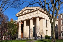 A building committee, organized by the corporation, developed plans for the college's first purpose-built edifice, finalizing a design on February 9, 1770. The subsequent structure, referred to as "The College Edifice" and later as University Hall, may have been modeled on Nassau Hall, built 14 years prior at the College of New Jersey. President Manning, an active member of the building process, was educated at Princeton and might have suggested that Brown's first building resemble that of his alma mater.[34]