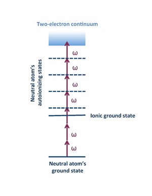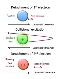 For noble gas atoms, non-sequential double ionization was first observed by L'Huillier.[9][10]