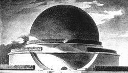 Boullée promoted the idea of making architecture expressive of its purpose, a doctrine termed architecture parlante ("talking architecture") by his detractors, which became an essential element in Beaux-Arts architectural training in the later nineteenth century. His style was most notably exemplified in his proposal for a cenotaph for the English scientist Isaac Newton, which would have taken the form of a sphere 150 m (500 ft) high, representing the universe, embedded in a circular base topped with cypress trees. Though the structure was never built, its design was engraved and circulated widely in professional circles.