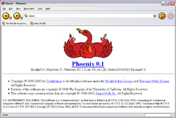 The Firefox project has undergone several name changes.[28] The nascent browser was originally named Phoenix, after the mythical bird that rose triumphantly from the ashes of its dead predecessor (in this case, from the "ashes" of Netscape Navigator, after it was sidelined by Microsoft Internet Explorer in the "First Browser War"). Phoenix was renamed in 2003 due to a trademark claim from Phoenix Technologies. The replacement name, Firebird, provoked an intense response from the Firebird database software project.[29][30] The Mozilla Foundation reassured them that the browser would always bear the name Mozilla Firebird to avoid confusion. After further pressure, Mozilla Firebird became Mozilla Firefox on February 9, 2004.[31] The name Firefox was said to be derived from a nickname of the red panda,[32] which became the mascot for the newly named project.[33] For the abbreviation of Firefox, Mozilla prefers Fx or fx, although it is often abbreviated as FF.[34]