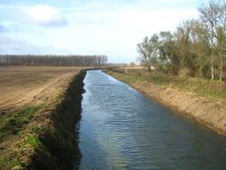 The formerly marshy valley has been made suitable for agriculture by land improvement since the 18th century. Numerous ditches and canals bisect those areas used mainly as arable land or grassland, regulating the water levels. The most important are the Great Havelland Canal (Havelländische Große Hauptkanal) and the Little Havelland Canal (Kleine Haupt- und Grenzkanal), which both empty into the Rhin. The Great Havelland Canal is fed by additional water from the River Havel via the Nauen-Paretz Canal and the Havel Canal.