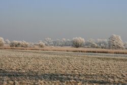 The natural vegetation of the luch was determined by its waterlogged terrain. Under such conditions an open carr fen landscape was formed. Revealingly the Slavic word lug means "marsh" as well as "meadow". Until the establishment of the present drainage system, there was a lot of bog formation. Today the countryside is dominated by grassland farming. The ditches and canals are mainly bordered by poplars and alders. Occasionally there are small copses with plantation-like monocultures of grey or hybrid poplar.