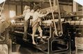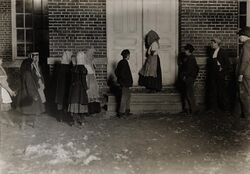 In 1910, over 2 million children in the same age group were employed in the United States.[39] This included children who rolled cigarettes,[40] engaged in factory work, worked as bobbin doffers in textile mills, worked in coal mines and were employed in canneries.[41] Lewis Hine's photographs of child labourers in the 1910s powerfully evoked the plight of working children in the American south. Hine took these photographs between 1908 and 1917 as the staff photographer for the National Child Labor Committee.[42]