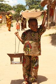 Child labour forms an intrinsic part of pre-industrial economies.[20][21] In pre-industrial societies, there is rarely a concept of childhood in the modern sense. Children often begin to actively participate in activities such as child rearing, hunting and farming as soon as they are competent. In many societies, children as young as 13 are seen as adults and engage in the same activities as adults.[20]