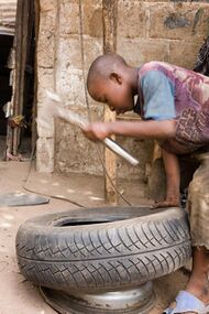 What industries children work in depends on whether they grew up in a rural area or an urban area. Children who were born in urban areas often found themselves working for street vendors, washing cars, helping in construction sites, weaving clothing, and sometimes even working as exotic dancers.[81] While children who grew up in rural areas would work on farms doing physical labour, working with animals, and selling crops.[81] Many children can also be found working in hazardous environments, with some using bare hands, stones and hammers to take apart CRT-based televisions and computer monitors.[83] Of all the child workers, the most serious cases involved street children and trafficked children due to the physical and emotional abuse they endured by their employers.[81] To address the issue of child labour, the United Nations Conventions on the Rights of the Child Act was implemented in 1959.[84] Yet due to poverty, lack of education and ignorance, the legal actions were not/are not wholly enforced or accepted in Africa.[85]