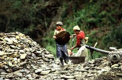 Small-scale artisanal mining of gold is another source of dangerous child labour in poor rural areas in certain parts of the world.[185] This form of mining uses labour-intensive and low-tech methods. It is informal sector of the economy. Human Rights Watch group estimates that about 12 per cent of global gold production comes from artisanal mines. In west Africa, in countries such as Mali – the third largest exporter of gold in Africa – between 20,000 and 40,000 children work in artisanal mining. Locally known as orpaillage, children as young as six years old work with their families. These children and families suffer chronic exposure to toxic chemicals including mercury, and do hazardous work such as digging shafts and working underground, pulling up, carrying and crushing the ore. The poor work practices harm the long-term health of children, as well as release hundreds of tons of mercury every year into local rivers, ground water and lakes. Gold is important to the economy of Mali and Ghana. For Mali, it is the second largest earner of its export revenue. For many poor families with children, it is the primary and sometimes the only source of income.[186][187]