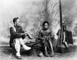 In southeast Asian colonies, such as Hong Kong, child labour such as the Mui Tsai (妹仔), was rationalised as a cultural tradition and ignored by British authorities.[76][77] The Dutch East India Company officials rationalised their child labour abuses with, "it is a way to save these children from a worse fate." Christian mission schools in regions stretching from Zambia to Nigeria too required work from children, and in exchange provided religious education, not secular education.[70] Elsewhere, the Canadian Dominion Statutes in form of so-called Breaches of Contract Act, stipulated jail terms for uncooperative child workers.[78]