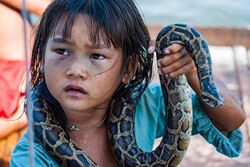 Significant levels of child labour appear to be found in Cambodia.[101] In 1998, ILO estimated that 24.1% of children in Cambodia aged between 10 and 14 were economically active.[101] Many of these children work long hours and Cambodia Human Development Report 2000 reported that approximately 65,000 children between the ages of 5 and 13 worked 25 hours a week and did not attend school.[102] There are also many initiative and policies put in place to decrease the prevalence of child labour such as the United States generalized system of preferences, the U.S.-Cambodia textile agreement, ILO Garment Sector Working Conditions Improvement Project, and ChildWise Tourism.[103][104]