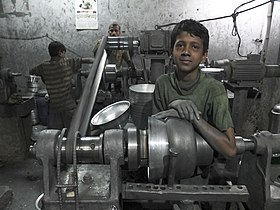 Child labour is the exploitation of children through any form of work that deprives them of their childhood,[3] interferes with their ability to attend regular school, or is mentally, physically, socially and morally harmful.[4] Such exploitation is prohibited by legislation worldwide,[5][6] although these laws do not consider all work by children as child labour; exceptions include work by child artists, family duties, supervised training, and some forms of work undertaken by Amish children, as well as by Indigenous children in the Americas.[7][8][9]