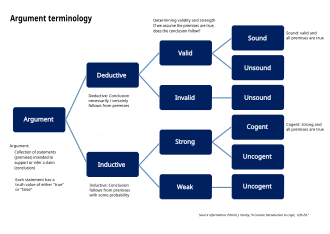 To assess an argument, one must see whether its premises support its conclusion, more specifically, one must see whether the argument is either deductively valid and sound or inductively strong and cogent.[3][4]