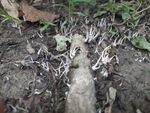 Coprinus disseminatus; commonly known as "fairy inkcap" or "trooping crumble cap” in a tree