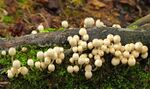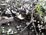 Coprinus disseminatus; commonly known as "fairy inkcap" or "trooping crumble cap”