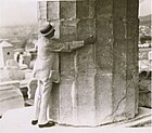Base of a Doric column, Parthenon, embraced by Frank G. Carpenter