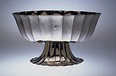 Fluting, very often convex, is also found in various media in the decorative arts, including metalware, wooden furniture, glass and pottery. It was common in English cut glass of the Georgian period. In metal plate armour, fluting was very practical, strengthening the plate against heavy blows.[36] It was especially common in the early 16th-century style called Maximilian armour, after Maximilian I, Holy Roman Emperor.